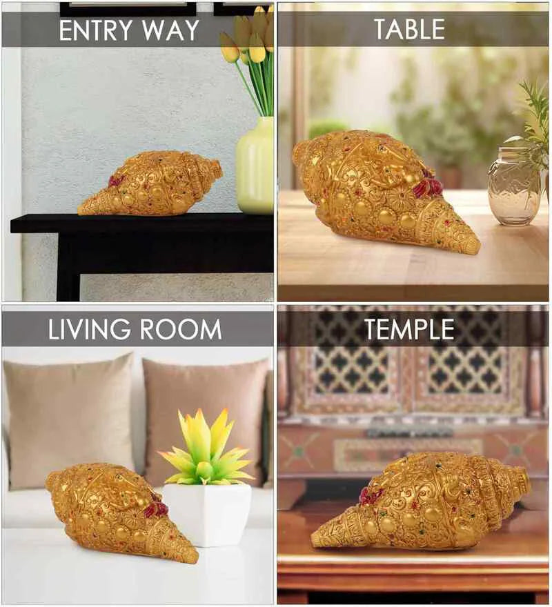 Ganesha Carving Shankh Showpiece(Golden Antique)
