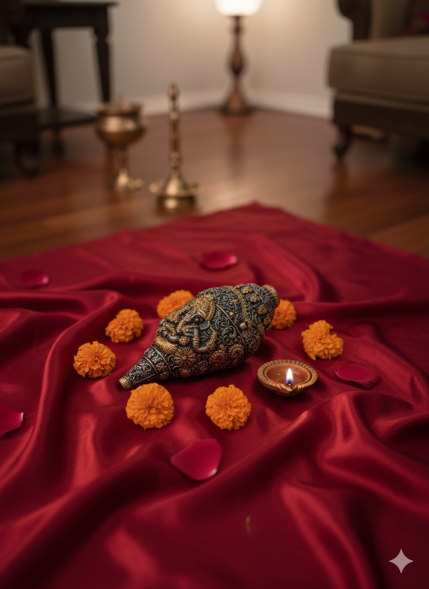 - Avoid: Never place the Shankh on the ground. It should always be kept on a stand or clean piece of cloth.